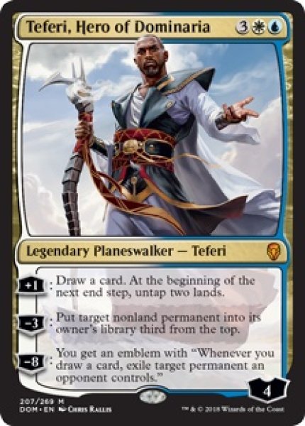 【再録カード】《ドミナリアの英雄、テフェリー/Teferi, Hero of Dominaria》【M】 [多色/カード左下 PWマーク有]