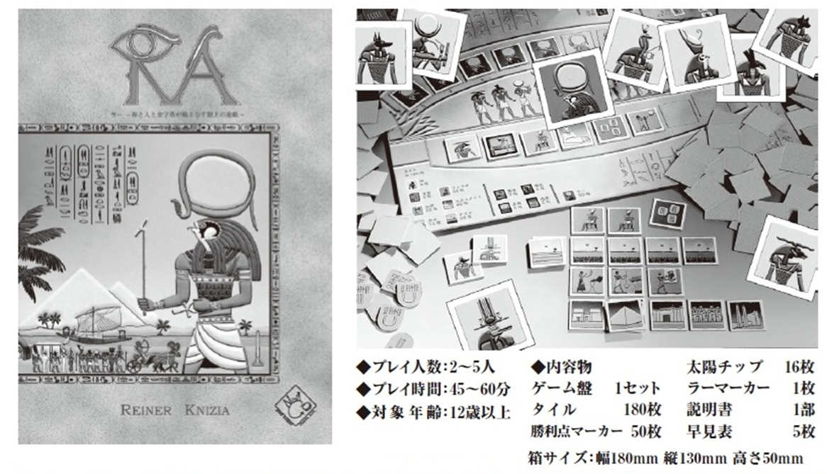 【お取り寄せ商品】表記のある商品は確保まで数日いただく可能性がございます。 不朽の名作「ラー」2025年版は破格の2000円! ラーは、約2,000年続くエジプト王朝の中で、ラーに供物を捧げ、一族の繁栄を競うゲームです。 舞台はエジプト。 古代から近代までの約2,000年の間、プレイヤーは各世代において一族の長となり、 ほかの一族よりも多くの名誉と賞賛を稼ぐことが目的です。 エジプト王朝が終わるまでに、最も多くの名誉を勝ち得た一族が勝者となります。 プレイ人数:2〜5人 所要時間:45〜60分 対象年齢:12歳以上 箱サイズ:180×130×50mm ※ こちらの商品は人気商品のため、メーカー様からの納品数カットや分納となる可能性がございます。 あらかじめご了承ください。 ゲームのプレイに支障のない初期傷や 軽微な外装のフィルム破損等につきましては一切補償できません。 ご了承ください。 |