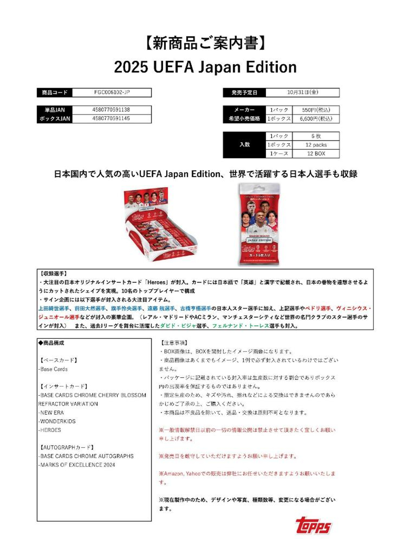 TOPPS UEFA ジャパンエディション 2025【25年10月31日発売】 [4580770591138]