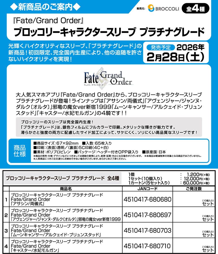 ブロッコリーキャラクタースリーブ プラチナグレード Fate/Grand Order「アサシン/両儀式」(65枚入り)