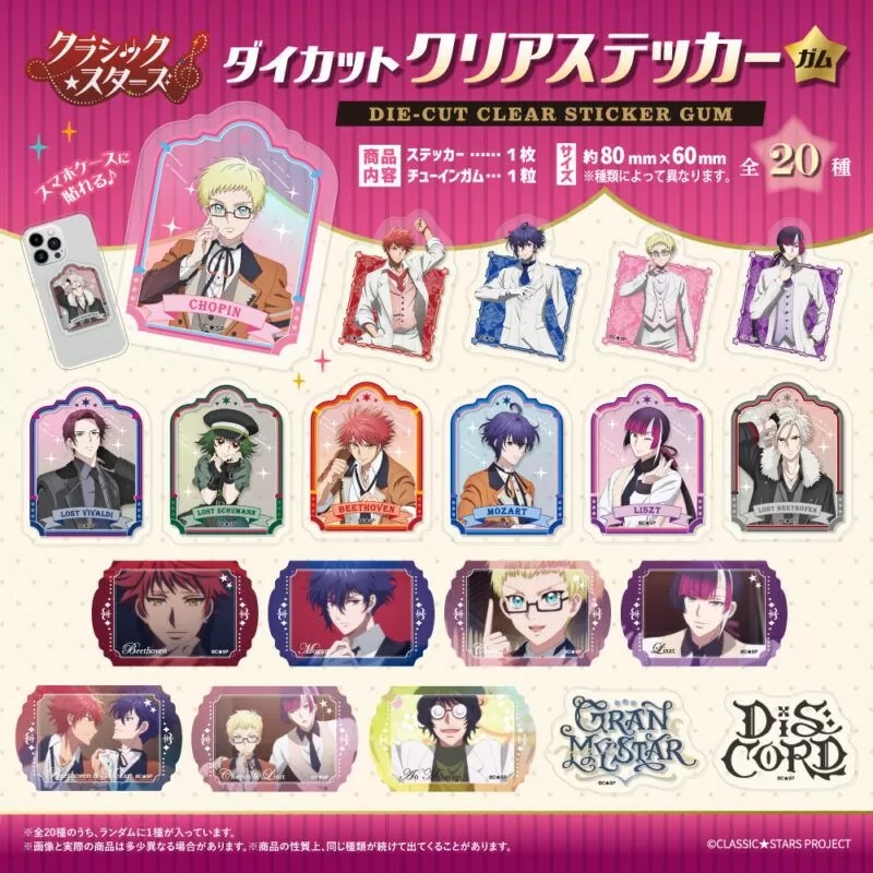 全20種 ・ベートーヴェンA 1種 ・モーツァルトA 1種 ・ショパンA 1種 ・リストA 1種 ・ロスト・ベートーヴェン 1種 ・ロスト・ヴィヴァルディ 1種 ・ロスト・シューマン 1種 ・ベートーヴェンB 1種 ・モーツァルトB 1種 ・ショパンB 1種 ・リストB 1種 ・ベートーヴェンC 1種 ・モーツァルトC 1種 ・ショパンC 1種 ・リストC 1種 ・ベートーベン&モーツァルト 1種 ・ショパン&リスト 1種 ・三原木逢生 1種 ・Gran★MyStar ロゴ 1種 ・Dis=Cord ロゴ 1種 商品内容 ステッカー1枚+チューインガム1粒 1BOX34パック入り ※BOX販売のみになります。 ※1BOXで全種類が揃わない場合もあります。予めご了承ください。 ※ こちらの商品は人気商品のため、メーカー様からの納品数カットや分納となる可能性がございます。 あらかじめご了承ください。 (販売商品には、メーカー規定の比率に従い、ランダムで封入されておりますので、 商品によって全種揃えるために必要な購入数は異なります。) |