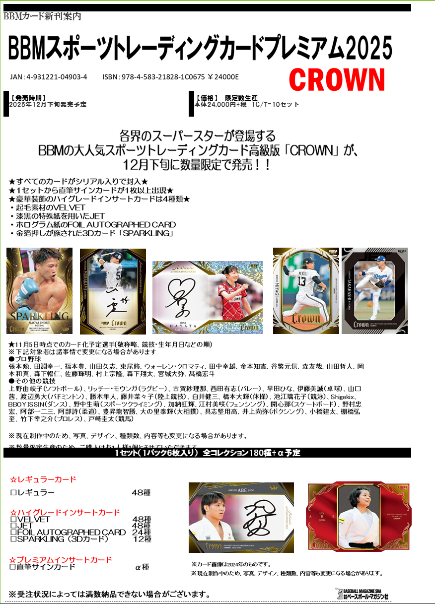 BBM スポーツトレーディングカードプレミアム2025 CROWN【25年12月下旬発売】 [4931221049034]