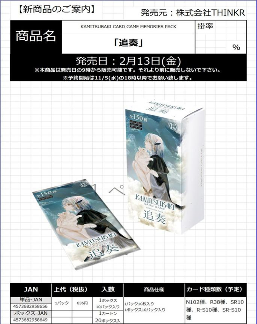 KAMITSUBAKI CARD GAME MEMORIES PACK 「追奏」BOX(10パック入り)