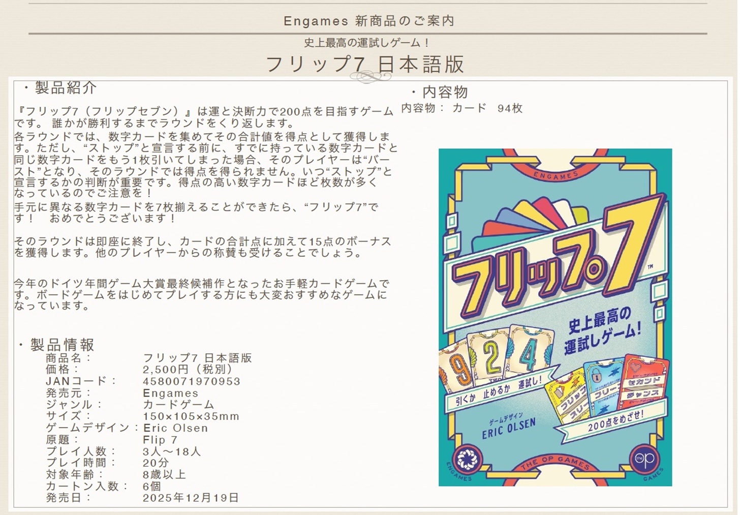 【予約商品】フリップ7 日本語版【25年12月19日発売】 [4580071970953]