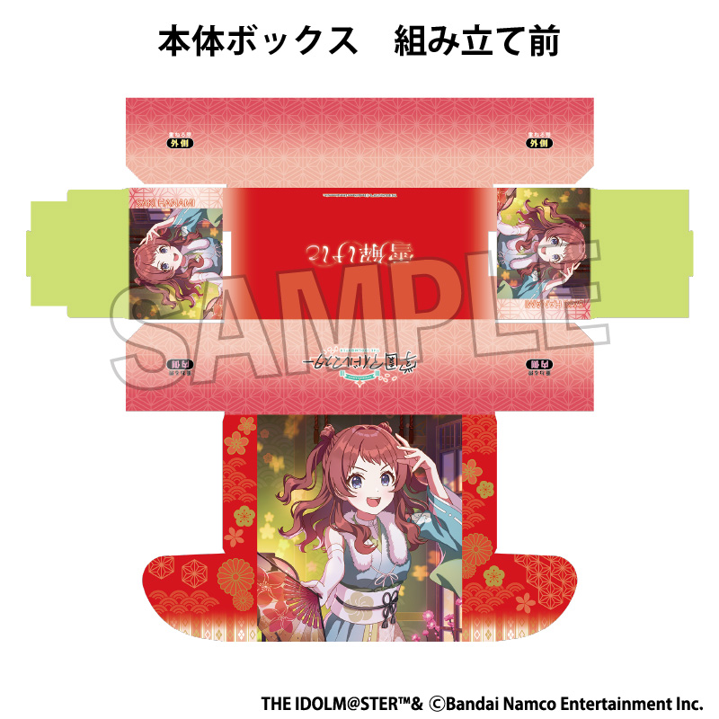 【サイズ】225×110×80mm(組立時) 【素材】紙 【印刷】フルカラー印刷 【その他】仕様:本体ボックス+仕切り2枚+インナーボックス+本体&インナー兼用仕切り1枚 |