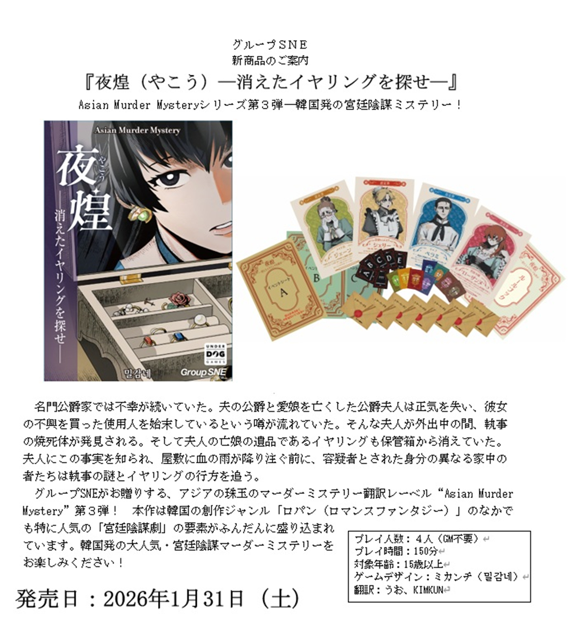 【予約商品】グループSNE 夜煌 消えたイヤリングを探せ 【26年1月31日発売】 [4580552551756]