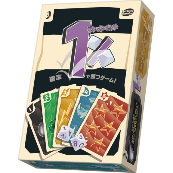 1%の確率で勝つゲーム!? ダイスを2個振って、どちらも0が出れば即勝利! はったりに打ち勝ち、確率を上げて勝負に挑みましょう! ゲームは予言フェイズとボーナスフェイズに分かれており、前半はブラフの要素が入ったチキンレースです。 手札をヒントに数字を吊り上げながら順番に「予言」を宣言していきます。 数字を信じられなくなったときは「コール」と叫び、各プレイヤーはどちらを支持するか表明した上で、手札を公開しましょう。 ここで勝ち残ったプレイヤーは、次のフェイズに参加することができます。 ボーナスフェイズでは最大3回ダイスロールに挑戦できるほか、「ボーナスカード」を獲得できるのがポイント! カードには「ダイスを振りなおす」「8が出たときに0とみなす」といったさまざまな効果があります。 確率を上げてから挑むか、一か八かで勝負に出るか… あなたは誰より早く「00」を出せるでしょうか? ゲームデザイナー:Luke Melia タイトル原題:1%: A Game of Strategic Chance オリジナル版メーカー:Iconiq Studios プレイ人数:2〜6人 プレイ時間:1〜30分 対象年齢:8歳以上 箱サイズ:115×170×40mm ※ こちらの商品は人気商品のため、メーカー様からの納品数カットや分納となる可能性がございます。 あらかじめご了承ください。 ゲームのプレイに支障のない初期傷や 軽微な外装のフィルム破損等につきましては一切補償できません。 ご了承ください。 |
