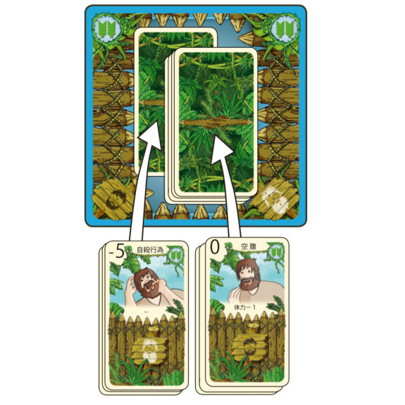 <内容物> ・カード:72枚 ・体力コマ:22個 ・配置ボード:3枚 ・ルールブック:1冊※ [カードサイズ:56×100mm] ※2026年2月出荷分より、「ルール:1冊」と「概要シート:1冊」が「ルールブック」に統合されております。 |