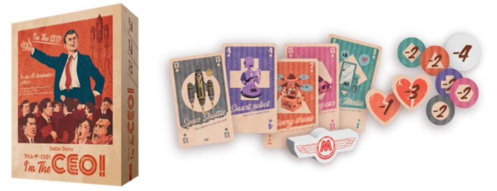 名作トリックテイキングゲーム「7つの印」をリメイク! 従業員 vs CEO! 会社の解雇を回避せよ! 私たちの世界よりAIが発展したちょっと違う未来のお話…… メガテック社の従業員であるあなたは、安定的な労働環境を得るために完璧な生産計画を立案、達成し、 優秀な人材であることを証明する必要があります。 あるいは新たなCEOに就任し、ライバルを蹴落とす手もあるかもしれません。 いずれにせよ、AIとの競争に晒された今、労働者に残された椅子は僅かしかないのです。 「アイムザCEO!」はAIが発展した未来が舞台の、予測と妨害に満ちたトリックテイキングゲームです。 プレイヤーは自身が勝つトリックの数と色を予測・宣言し、その通りにトリックに勝つことを目指します。 さらにこのゲームではCEOプレイヤーがあなたの計画を邪魔してきます。 逆にあなたがCEOに就任してライバルを蹴落とす手もあるでしょう! プレイ人数:3〜5人 プレイ時間:30分 対象年齢:10歳以上 ゲームデザイン:Stefan Dorra イラストレーション:ママダユースケ グラフィックデザイン:別府さい 商品サイズ:110 x 207 x 44mm ※ こちらの商品は人気商品のため、メーカー様からの納品数カットや分納となる可能性がございます。 あらかじめご了承ください。 ゲームのプレイに支障のない初期傷や 軽微な外装のフィルム破損等につきましては一切補償できません。 ご了承ください。 (26年1月21日ご予約締め切り予定 ※より早期に受付終了する可能性がございます) |