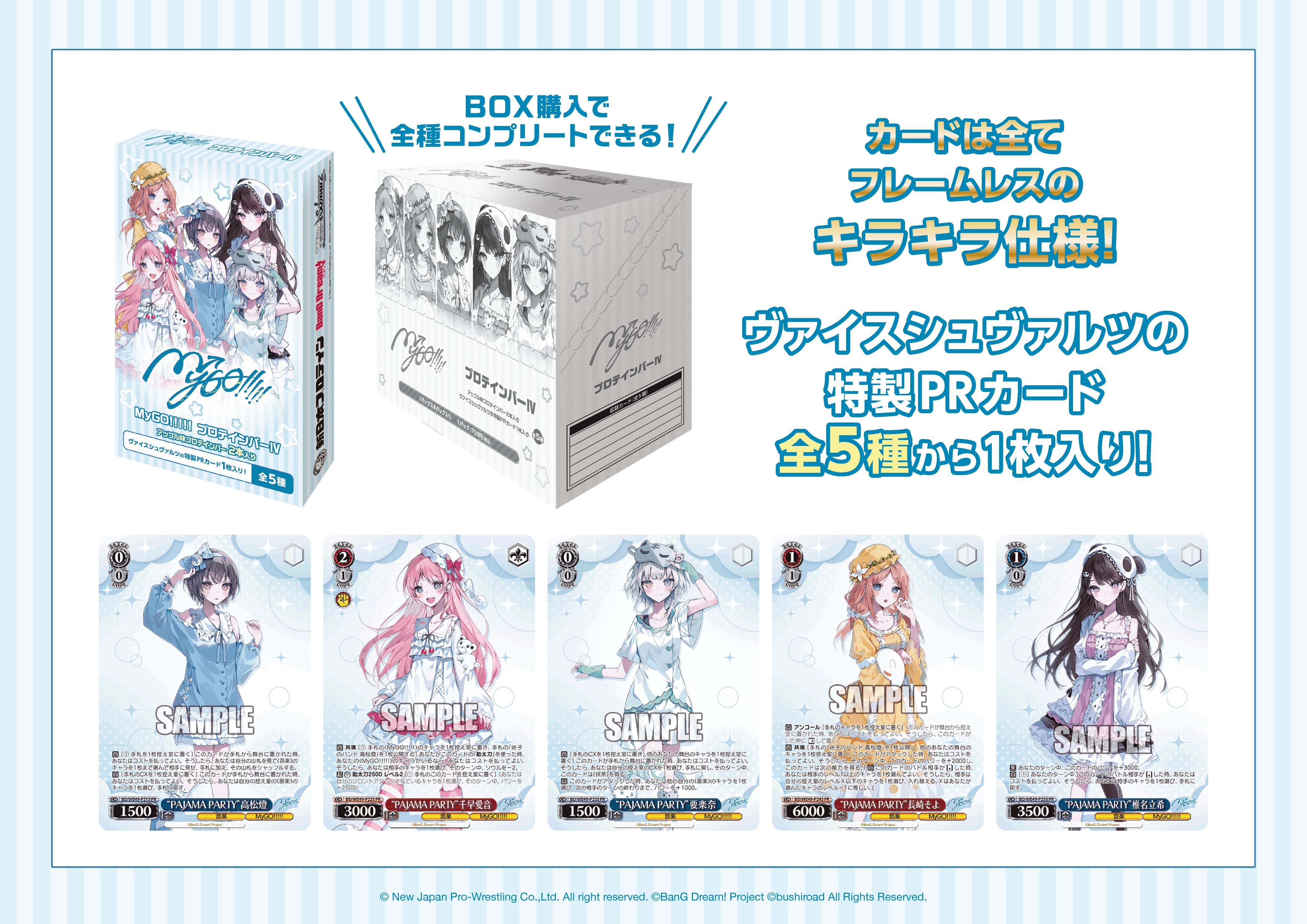 | 製品仕様 | 1パック プロテインバー2本+ヴァイスシュヴァルツ PRカード1枚入り(カード全5種) 1箱 8パック カートン 12箱 賞味期限 2027年2月 |