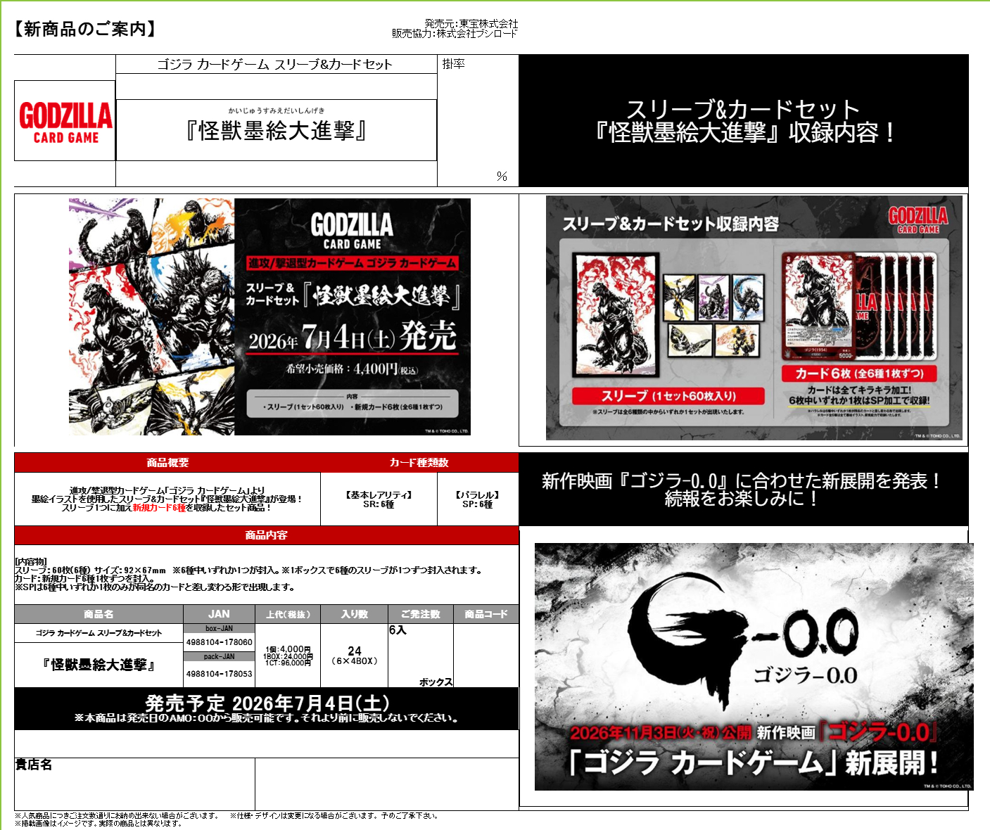 ゴジラ カードゲーム スリーブ&カードセット『怪獣墨絵大進撃』BOX(6セット入り)<!-- GODZILLA -->