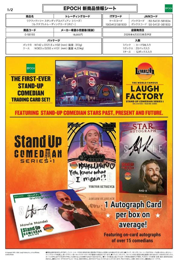 EPOCH Laugh Factory Stand Up Comedian Series 1 Collectible Trading Cards -Hobby- BOX(20パック入り)【26年4月30日発売】 [5054131581834]