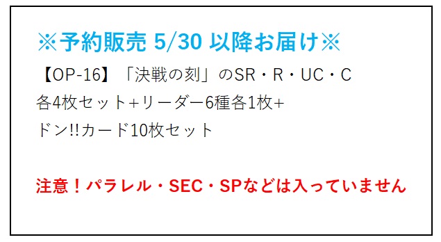 【予約商品】【OP-16】「決戦の刻」のSR・R・UC・C 各4枚+リーダー6種各1枚+封入ドン!!カード10枚のセット(注意!パラレルイラスト・SEC・SP等は入っていません)【26年5月30日以降お届け予定】