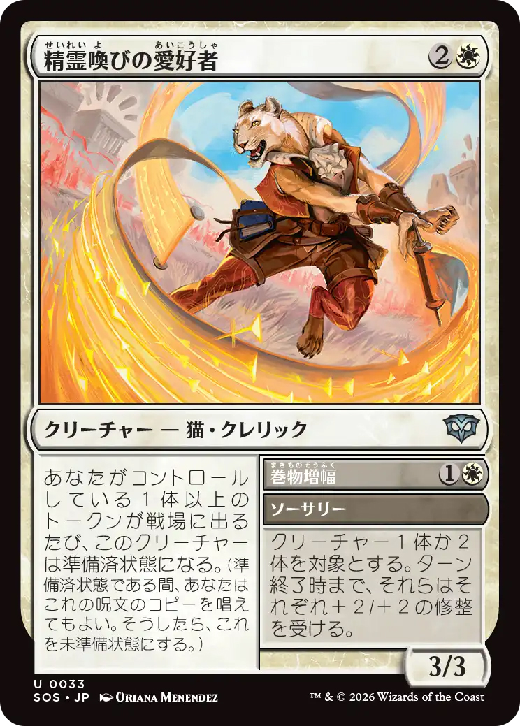 【SOS】《精霊喚びの愛好者/Spiritcall Enthusiast》【U】 [白/日本語]