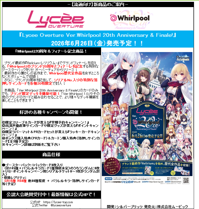 【予約商品】Lycee Overture Ver.Whirlpool 20th Anniversary & Finale! BOX(20パック入り)【26年6月26日発売】 [4550621627576]